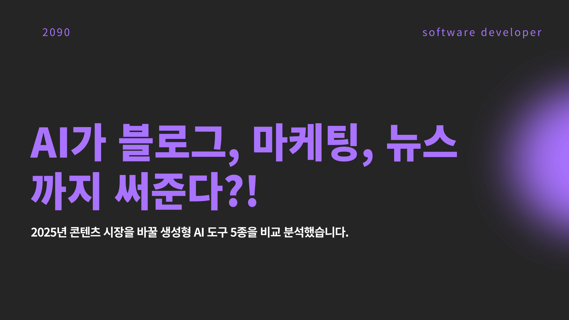 "AI가 블로그, 마케팅, 뉴스까지 써준다?! 2025년 콘텐츠 시장을 바꿀 생성형 AI 도구 5종을 비교 분석했습니다."