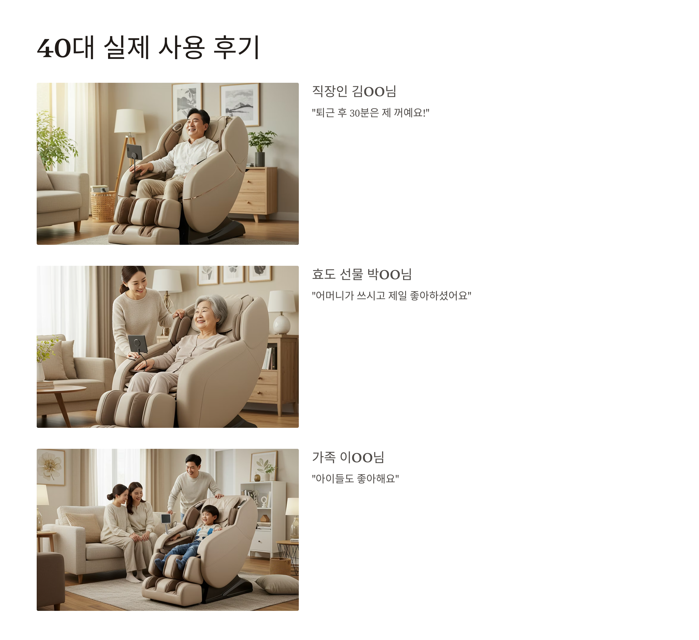 - "퇴근 후 30분은 제 꺼예요!" — 안마의자 덕분에 저녁이 기다려진다는 직장인 김OO님