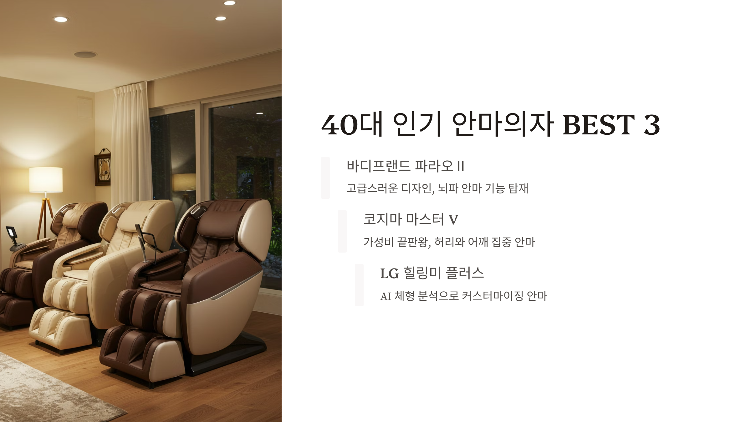 40대가 직접 써보고 추천한 안마의자 BEST 3, 현실적인 구매 팁까지 알려드립니다.