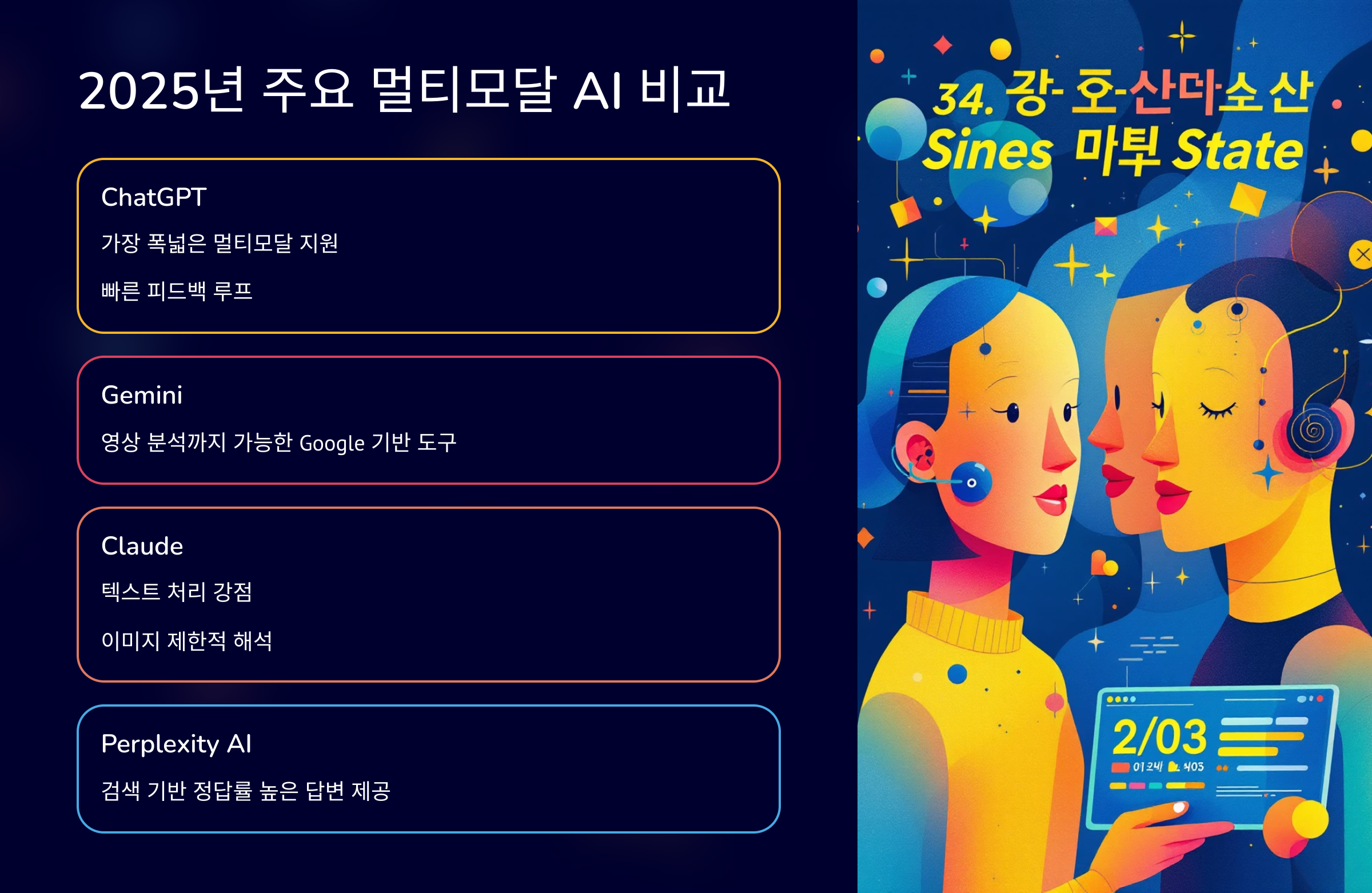 2025년 현재 가장 많이 회자되는 멀티모달 AI 플랫폼들을 리스트로 정리해봤어요. 각각의 특징을 잘 파악해두면 어떤 상황에 어떤 툴이 적합한지 감이 딱 올 거예요.